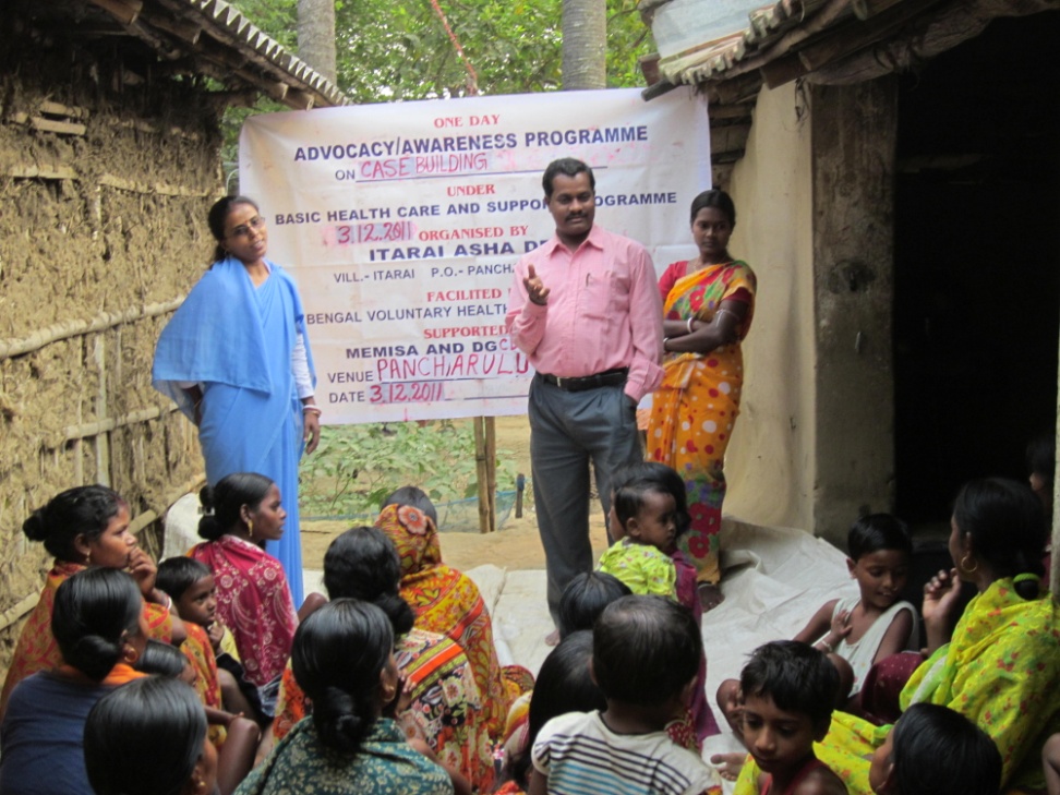 Partner NGO: Itarai Asha Deep - IndiaProgramme: Community support project in West Bengal Beneficiaries: Over 6000 persons using the clinic and 55 children attending the nursery school run by the NGO The first project (construction of a flood-resistant building for community support services) began in February 2013. Health care and health education activities (as shown here) will be able to continue without interruption when floods occur. |
