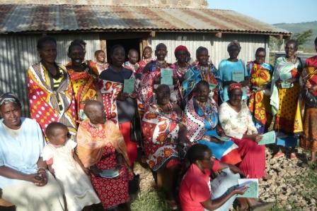 ![]() | Partner NGO: Namayiana Oloshoibor (Kenya)Programme: Support of handicraft production at the Namayiana Maasai Women’ Centre. Beneficiaries: 112 members of the association and their families (70 men and 594 children). Three projects completed (July 2010-December 2012): construction of two latrines; establishment of a revolving fund for wholesale purchase of materials; adult literacy and health education. The women are shown here with the certificates they received at the end of the literacy and health education course. |