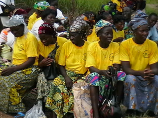 ![]() | ONG asociada: CRADIB (Centre de recherche et d’action pour le développement des infrastructures de base) – BeninPrograma: proporcionar infraestructura y capacitación para cooperativas de mujeres que elaboran productos a base de anacardo y soja (cofinanciado por el Service de la solidarité internationale del Cantón de Ginebra) Beneficiarios: 1280 mujeres miembros de cooperativas de siete comunidades (communes) que ocupan más de 14 000 km2 en la región central de Benin. El segundo proyecto de este programa finalizó en diciembre de 2012. Abarcaba la construcción de un edificio (un depósito, una sala de capacitación/ reuniones, unidades de procesamiento) en la comunidad de Djidja, la organización de cursos de alfabetización para los miembros de las cooperativas de tres comunidades y el envío de un boletín informativo a las cooperativas de las siete comunidades. En la foto figura el coordinador y capacitador de la comunidad de Savalou junto con las representantes de las distintas cooperativas. Se reunieron con objeto de examinar las metas fijadas en el boletín informativo y preparar la campaña de comercialización de 2013. |